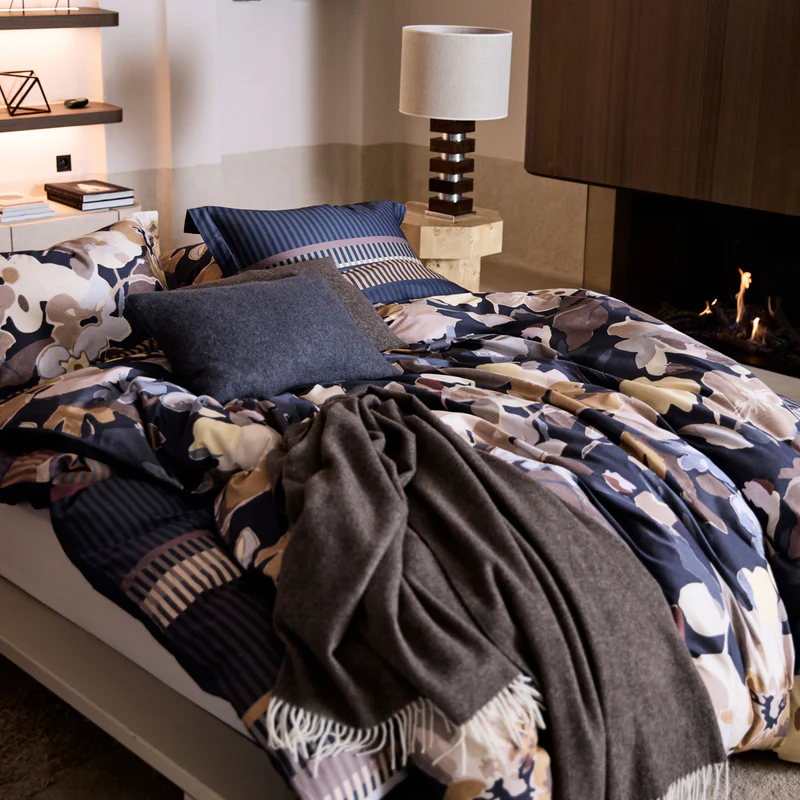 Dekbedovertrekset Lavender Haze in de kleur blue ink heeft een diepe donkerblauwe basis met grafische bloemen in zachte tinten. Alleen de voorzijde is bedrukt, de achterzijde is effen. Het gladde katoensatijn zorgt voor een lichte glans en een comfortabele slaapervaring. Het kussensloop heeft een oxford rand. Dit 100% katoensatijnen dekbedovertrek biedt een luxueuze en comfortabele slaapervaring dankzij de zachte, soepele textuur en ademende eigenschappen. Het speciale weefsel van fijne katoengaren zorgt voor een glad oppervlak en lichte glans. Hierdoor voelt het heerlijk zacht op de huid, wat zorgt voor comfortabel slapen. Bovendien reguleert katoen van nature de lichaamstemperatuur en absorbeert het vocht, wat resulteert in een aangenaam slaapklimaat en goede nachtrust.