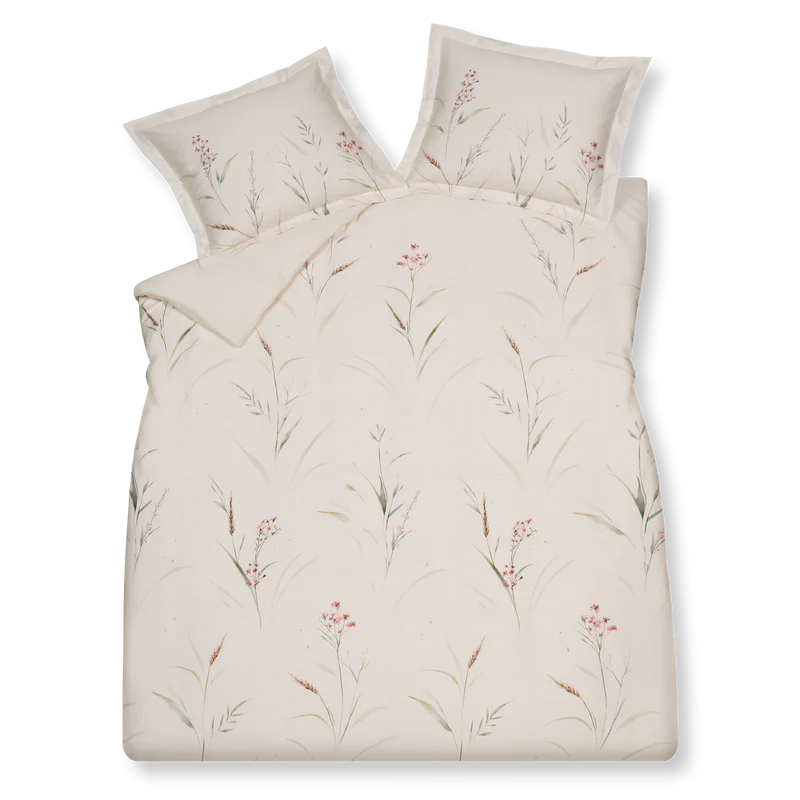 Dekbedovertrekset Sylva in de kleur cream tan toont een kalme bloemenprint op de voorzijde van zacht katoensatijn. De achterkant is effen en het overtrek is afgewerkt met een elegante oxford kussensloop een harmonieuze basis voor je slaapkamer. Dit 100% katoensatijnen dekbedovertrek biedt een luxueuze en comfortabele slaapervaring dankzij de zachte, soepele textuur en ademende eigenschappen. Het speciale weefsel van fijne katoengaren zorgt voor een glad oppervlak en lichte glans. Hierdoor voelt het heerlijk zacht op de huid, wat zorgt voor comfortabel slapen. Bovendien reguleert katoen van nature de lichaamstemperatuur en absorbeert het vocht, wat resulteert in een aangenaam slaapklimaat en goede nachtrust.